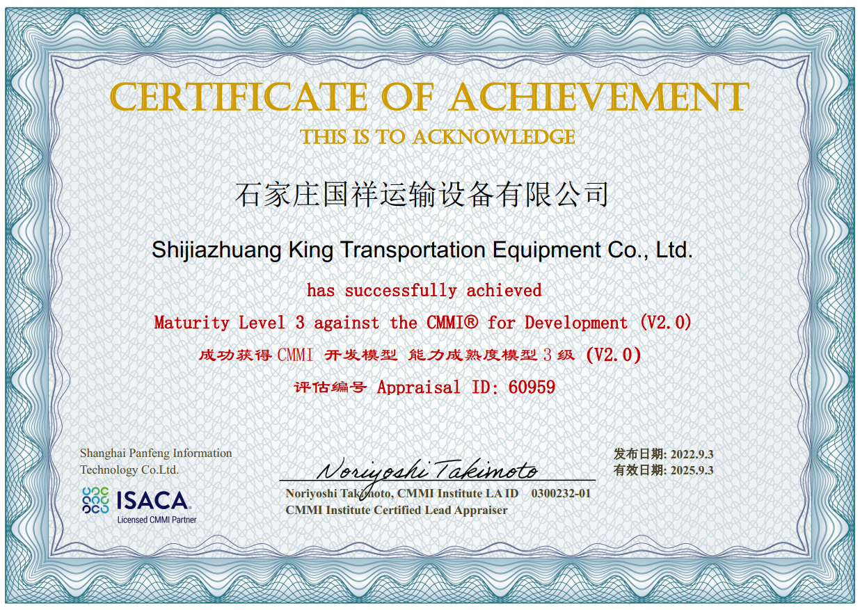 KING has passed the review of CMMI3 certification again recently, which marks the company continues to stand in the world leading position in aspects of standardization, normalization and maturity of software research ability, process organization ability and project management ability.