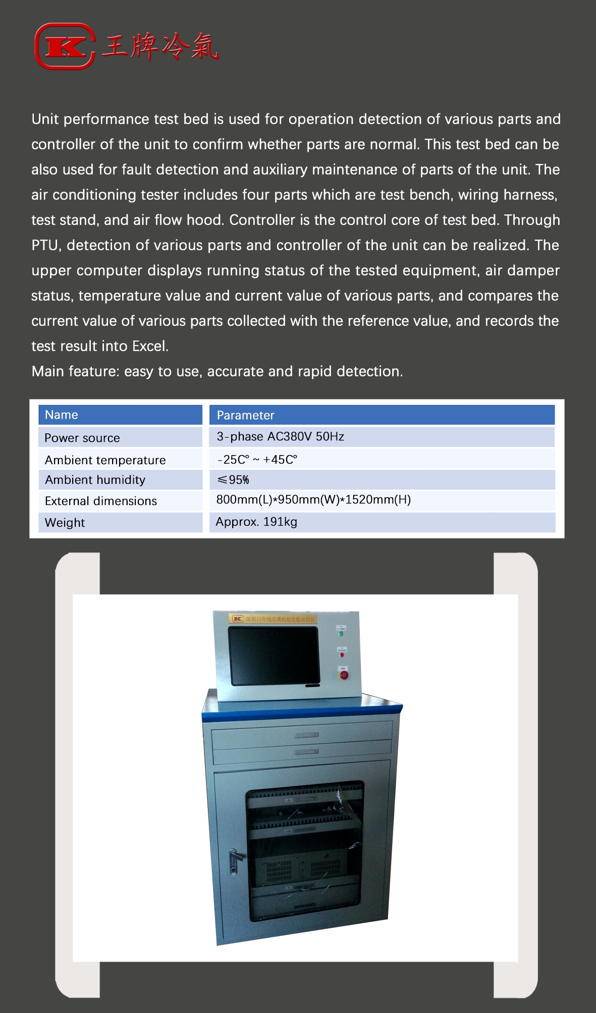 Comprehensive test bed for air conditioning
